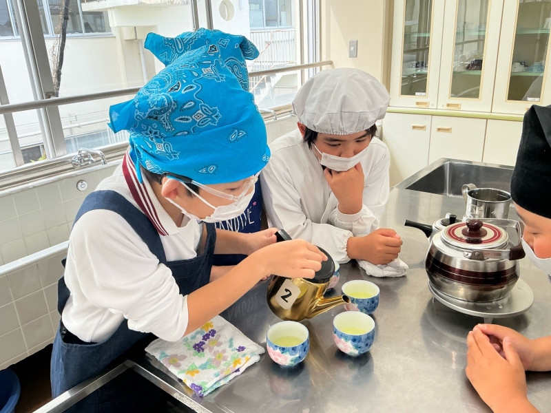 2025年5月1日 16時42分家庭科の授業が始まった5年生。いつの時代も、調理実習はわくわくです。今日はお湯を沸かし、お茶をいれる活動を行いました。いつもに増しておいしくお茶を味わったことでしょう。コンロや調理器具の扱いに、こうしてひとつひとつ慣れていきます。