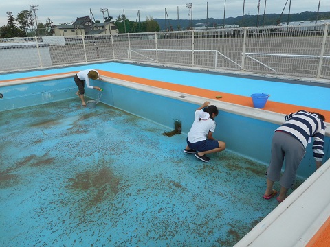 本日5・6時間目を使って、6年生がプール清掃を行いました。