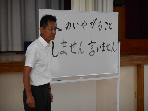 6月、朝会 2017年6月5日 12時43分 本日は、6月の朝会を行いました。 続きを読む 私から、以下のような話をしました。「6月に入りました。そろそろ梅雨入り宣言が出される頃です。そうすると蒸し暑くなりますが、そんな蒸し暑さに負けずに頑張りましょうね。 さて、今日はいじめについてお話をします。 校長先生は鼻の下に大きなほくろがあります。小学生の頃に、そのせいで「鼻くそ」といういやなあだ名をつけられたことがありました。校長先生は、そうやって呼ばれるとすごくいやな思いがしました。今でも時々、ほくろのことを言われることがあります。そういうのはすごくいやです。 それから、校長先生が中学に入ったばかりの頃、クラスで一番背が低かったので、ほかの小学校から来た人に、「ちび」と馬鹿にされたことがありました。これもすごくいやでした。でも校長先生の友達が、その子に向かって「そういうことを言っちゃあだめだに」と、いつもかばってくれました。なんかそうやって、自分の味方をしてくれる友達がいて、本当に助けられました。その後、校長先生に向かって「ちび」と言った人より校長先生の方が背が高くなったとき、反対に「ちび」と馬鹿にしてやろうかと思いましたが、自分が言われていやだったことを、言うのはやめようと思って言いませんでした。 さて、皆さんは、今更校長先生が言うまでもなく、いじめはいけないことだ、いじめをしてはいけないとわかっていますね? それからさっき、校長先生の経験でも話しましたが、こんなことも、きっと聞いたことがあるのではないでしょうか。「自分がされたらいやなことを、 人にしてはいけない」 これは、自分がこんなことされたらいやだなと思うようなことを、他の人にしてはいけないということです。皆さんはそんなことはしていませんね。 でもちょっと考えてみてください。こんなことはありませんか?それは、「自分はされても全然平気なんだけど、そのくらいのこと言われてもされても自分は気にもしないんだけど、他の人にしたら相手がすごくいやがった。」 自分がされたらいやなことを他の人にしない、これはいじめをしない第一歩です。そして、もう一つ大事なことは、自分が平気なことでも、相手の人がいやがったら、それもいじめになってしまうということです。どんなに小さなことであっても、相手のいやがることをするのは、もういじめなのです。 最近、人がいやがる言葉を、平気で口にする人がいます。それはもういじめです。絶対それは許しません。 でも気づかずに、相手のいやなことを言ってしまう人もいるかもしれません。もし皆さんが、人からいやなことを言われてつらかったら、「そんなことを言わないで」と相手にしっかり伝えましょう。もし皆さんの周りに、いやなことを言われてつらがっている友達がいたら、相手に「そんなことを言っちゃだめだよ」とかばってあげましょう。 この東小学校で、人を傷つける言葉によって、つらい思いをしている人がいなくなって、みんなが楽しく元気に学校生活を送れるようになることを願っています。」このあと、岡本教諭の指揮、6年生の高野くんの伴奏で校歌の1番を歌って朝会を終了しました。 閉じる